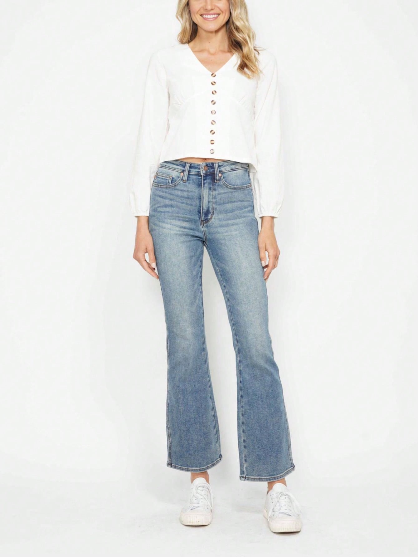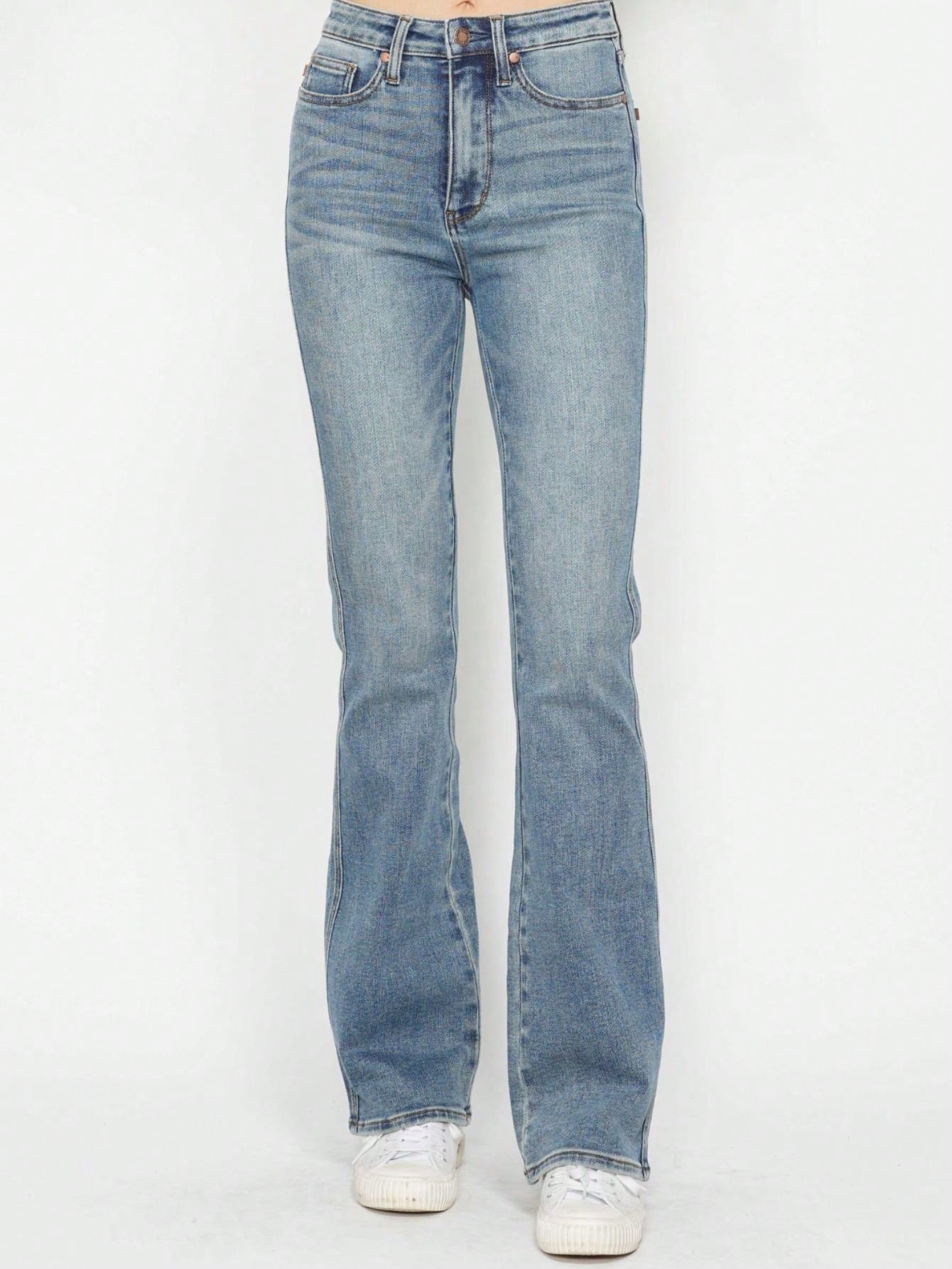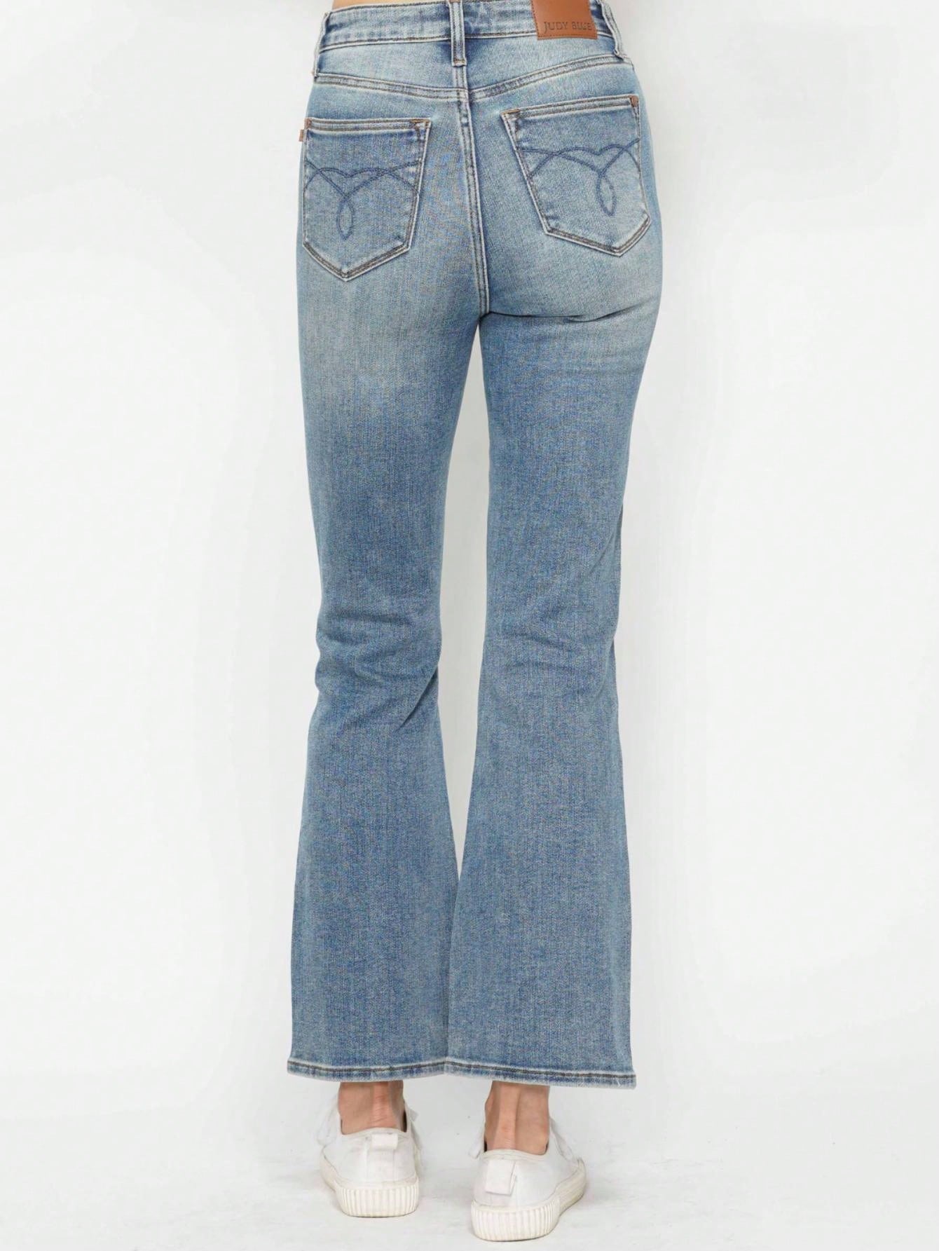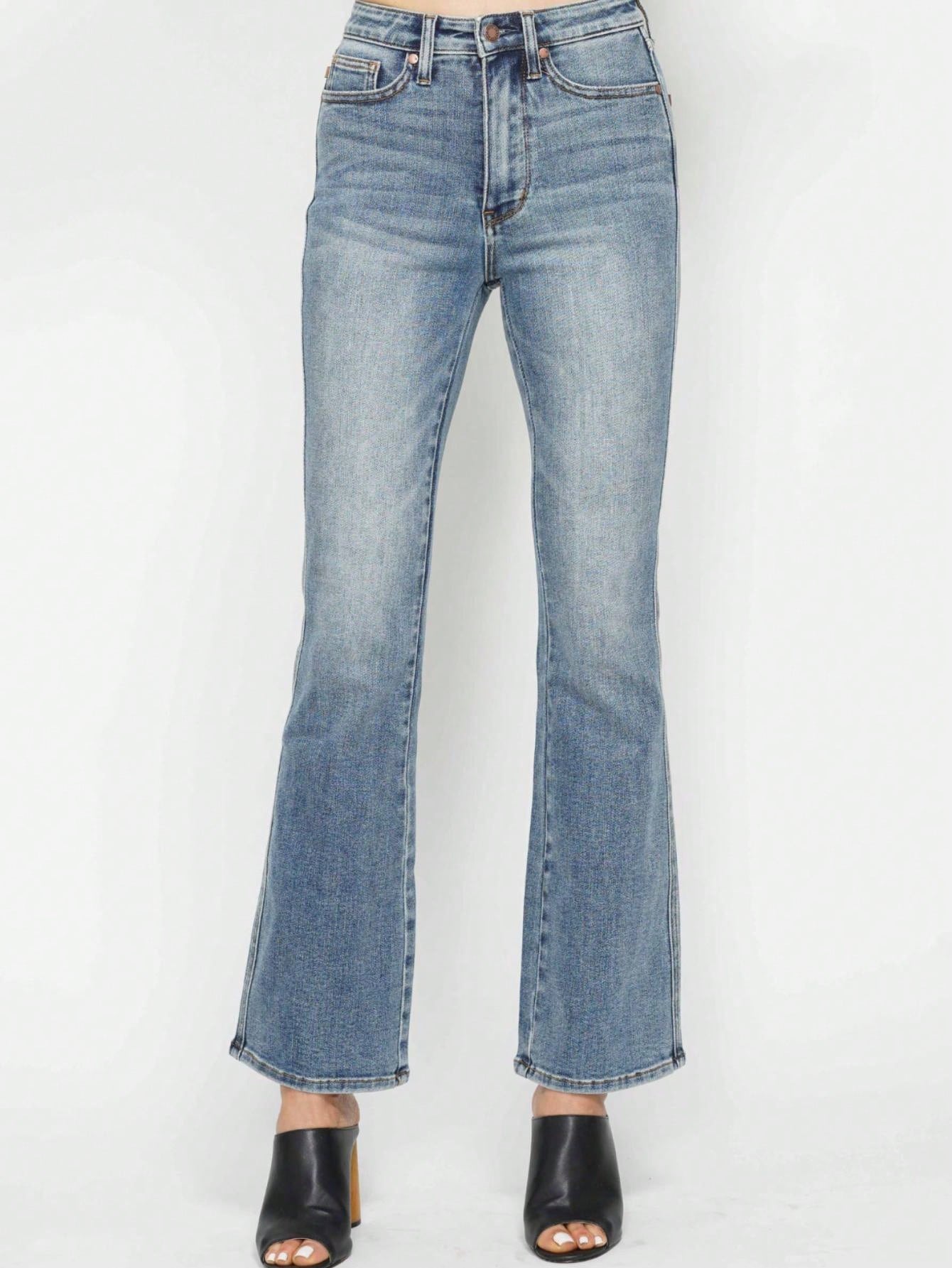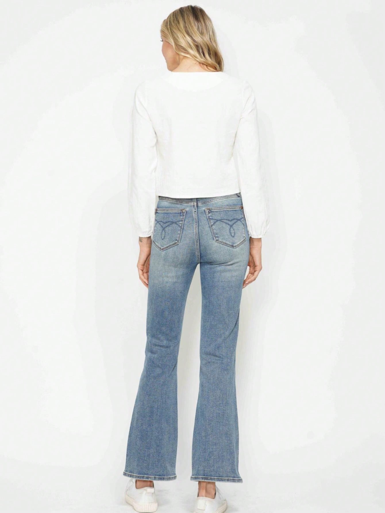 Tummy Control Back Embroidered Pocketed Bootcut Jeans are a stylish and figure-flattering option for your denim collection. The tummy control feature helps smooth and shape your midsection for a streamlined look. The embroidered pockets add a fun and fashion detail to the back of the jeans. The bootcut silhouette is classic and versatile. making these jeans a great option for a variety of occasions. Pair them with a blouse and heels for a dressier look. or with a casual tee and sneakers for a more relaxed outfit. These jeans offer both style and functionality. making them a must-have in your closet.